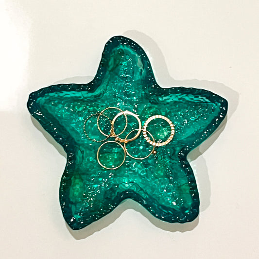 Handcrafted Ocean-Inspired Starfish Trinket Dish | Teal Green Resin Jewelry Holder
