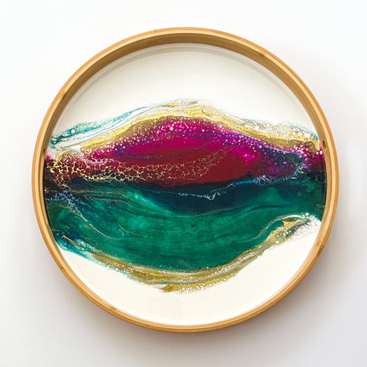 Geode Inspired Bamboo Tray- Peacock Maroon Green