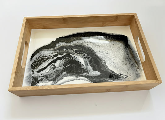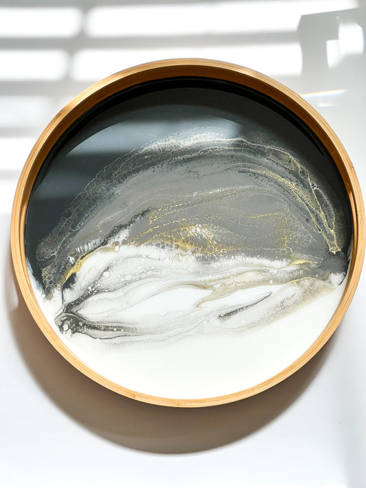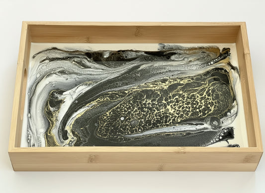 Geode Inspired Bamboo Tray- Shades of Black